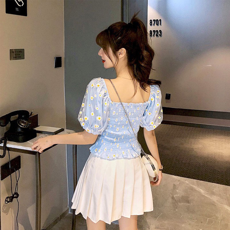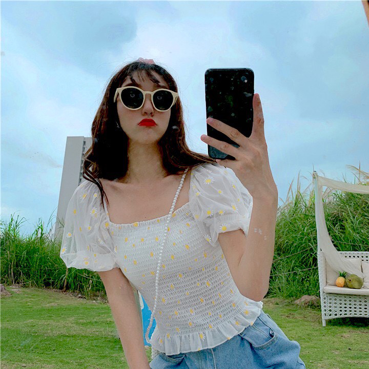 - Áo kiểu crotop phần thân áo bo chun co giãn, tay phồng mix chất voan lưới siêu xịn xò. Áo với họa tiết cúc họa mi xinh xắn đang được lòng phái đẹp. Sắm ngay một chiếc về đi dạo, cà phê với bạn bè hay du lịch sống ảo đều xinh lung linh ạ!