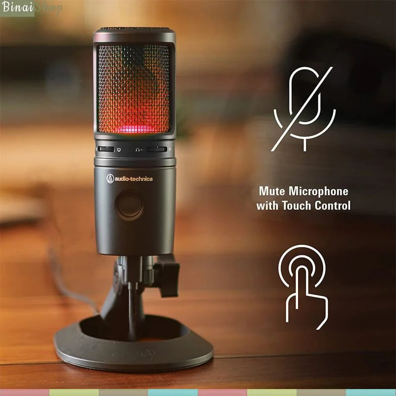 • Nút tắt tiếng cảm ứng mềm được đặt thuận tiện trên thân micrô để tắt âm thanh nhanh chóng và âm thầm trên micrô.