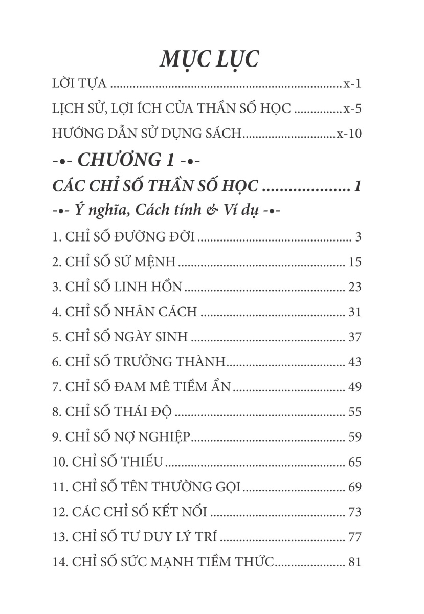 • Phần 1: Giải thích lịch sử hình thành bộ môn Thần số học và Hướng dẫn sử dụng sách cho người đọc