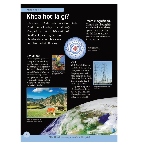 Với các hình minh họa trực quan sinh động, bắt mắt, cuốn sách cung cấp một lượng kiến thức phong phú, súc tích, dễ hiểu, cùng những câu hỏi vui, mẩu thông tin thú vị về khoa học. Em sẽ được tìm hiểu từng lĩnh vực mà khoa học nghiên cứu, từ sinh vật học, hóa học, vật lí tới thiên văn học. Bên cạnh đó, em có thể tìm trong cuốn sách các hướng dẫn và gợi ý giúp em thử làm nhà khoa học nhí nữa đấy.