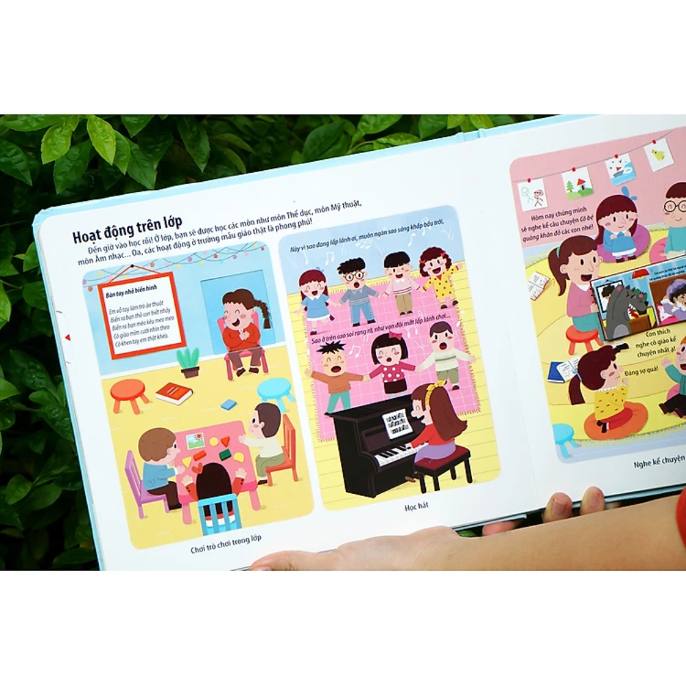 Bách khoa kỹ năng sống đa tương tác - Những hoạt động ở trường mẫu giáo giúp con vui vẻ đến lớp là cuốn sách Lật mở - Chuyển động có nội dung vô cùng