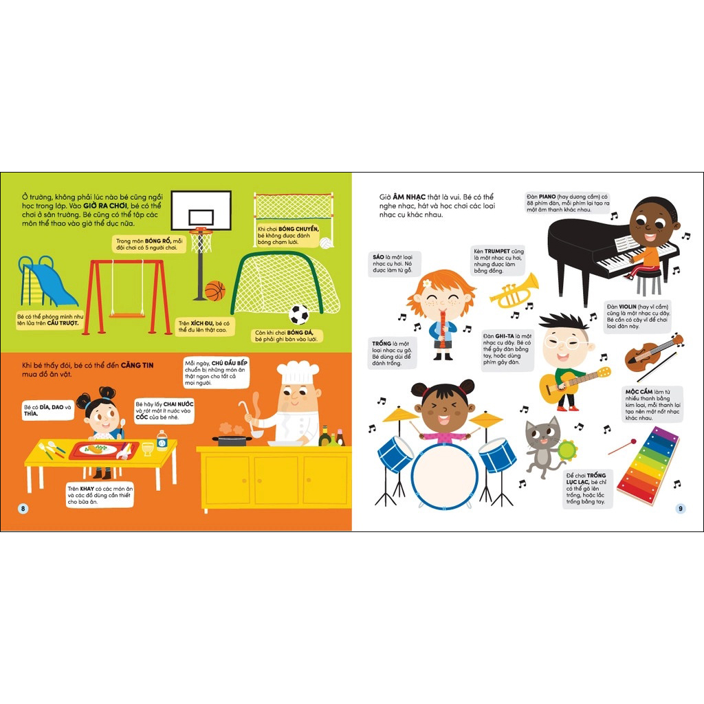 - Trong thành phố, ở trang trại, ngoài biển xa, trên núi cao, trong rừng rậm, ở trường học hay ngay trong nhà: thế giới này có biết bao điều để bé khám phá và gọi tên.