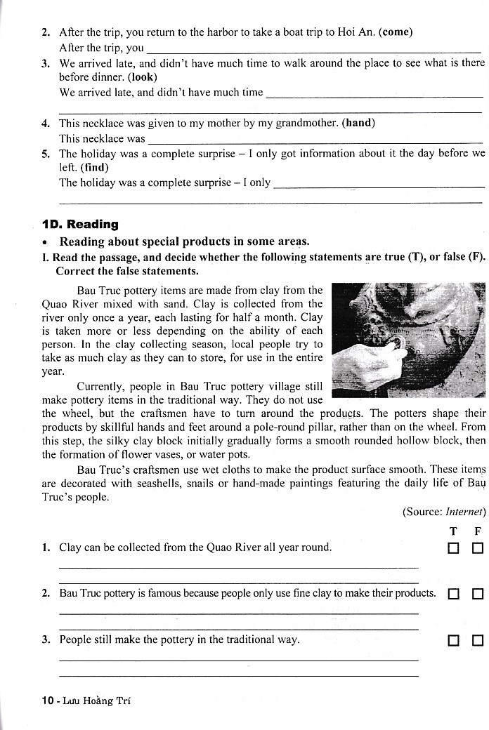 Bài tập dành cho mỗi đơn vị bài học gồm 6 phần: Phonunciation, Vocabulary, Grammar, Speaking, Reading, Writing và một bài ôn tập dưới dạng Test gồm 50 câu hỏi kiểm tra với bài tập phát triển kỹ năng trên.