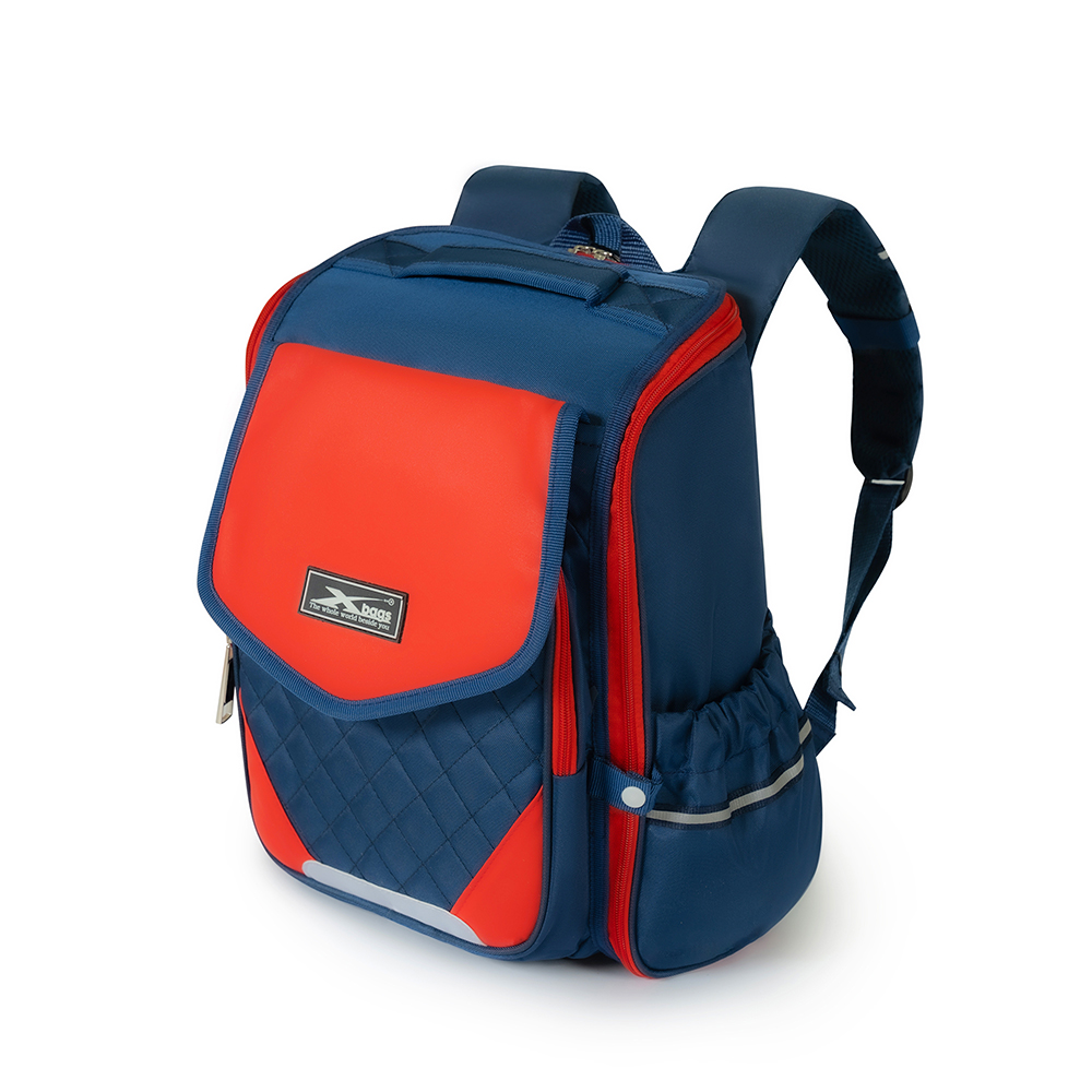 Thiết kế gọn nhẹ phom hình hộp với tông màu đỏ phối hợp xanh đậm tạo nên gam màu mạnh mẽ sôi nổi, thu hút ánh nhìn ngay cả khi đứng cách xa cũng dễ dàng nhận ra bé.