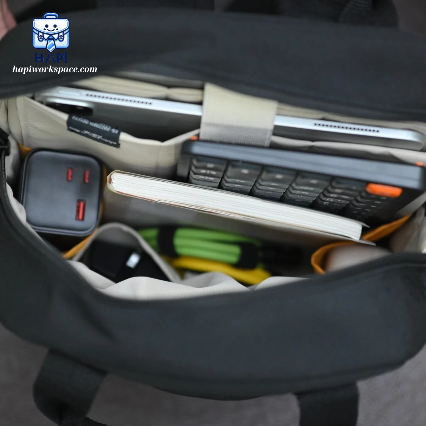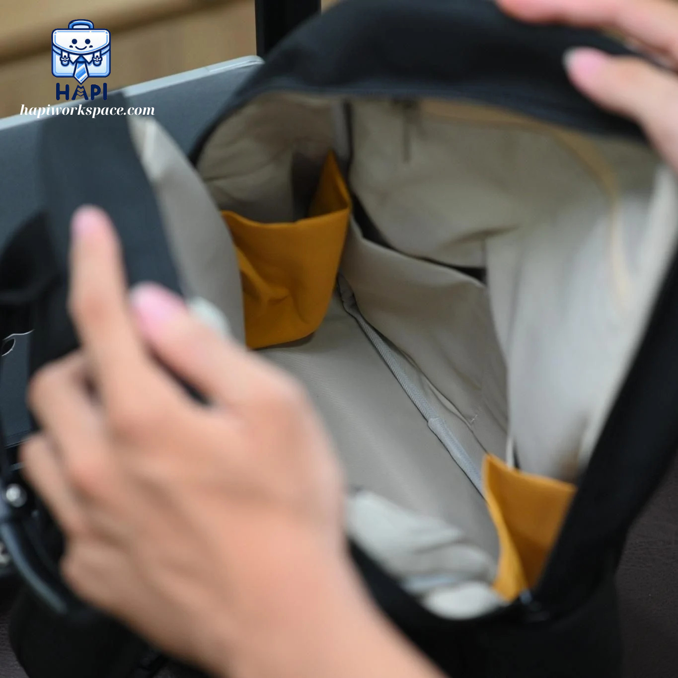 Tuy nhỏ gọn nhưng bên trọng lại là một khoang chứa khá lớn với nhiều ngăn được chia cực kỳ thông minh. Lớp vải lót mềm mại mang đến sự thích thú ngay lần đầu tiên chạm vào. Với thể tích chứa lên đến khoảng 12L, thoải mái cho bạn mang cả một thế giới công nghệ mini bên mình.