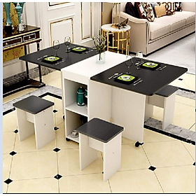 Bàn ăn gấp gọn có bánh xe , Bàn ăn thông minh 4 ghế gấp gọn tiện lợi tiết kiệm không gian decor