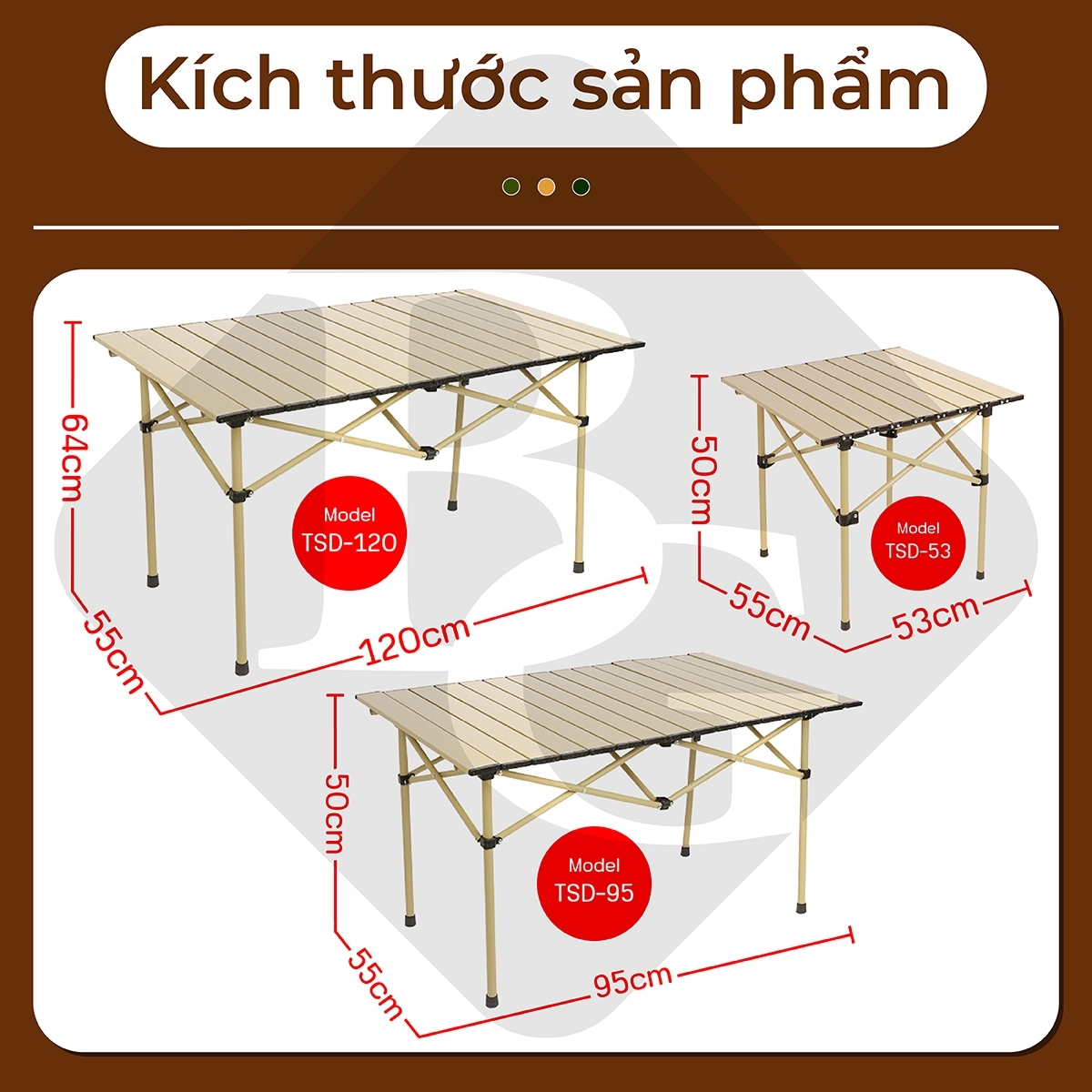 Mua tại TiktokBàn gấp di động, bàn cắm trại (màu đen) ️Được làm từ chất liệu tốt, chắc chắn, bền bỉ, tuổi thọ cao. ️Có thể gấp lại và trải ra để sử dụng dễ dàng, tiện lợi, không rắc rối ️Trọng lượng nhẹ, đi kèm túi xách, dễ dàng mang theo, tiết kiệm không gian. ️ Chất liệu chống thấm nước Dễ dàng để làm sạch ️Kích thước vừa phải Có thể được sử dụng cho nhiều mục đích. Có thể sử dụng theo nhiều cách như hoạt động ngoài trời, quầy bán hàng, cắm trại, họp mặt gia đình nhỏ TSD-53 Kích thước: 53x52x50 cm. TSD-95 Kích thước: 95x55x50 cm. TSD-120 Kích thước: 120x55x50 cm.