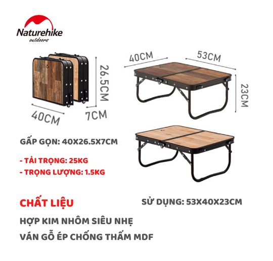 Bàn gỗ cắm trại gấp gọn NatureHike