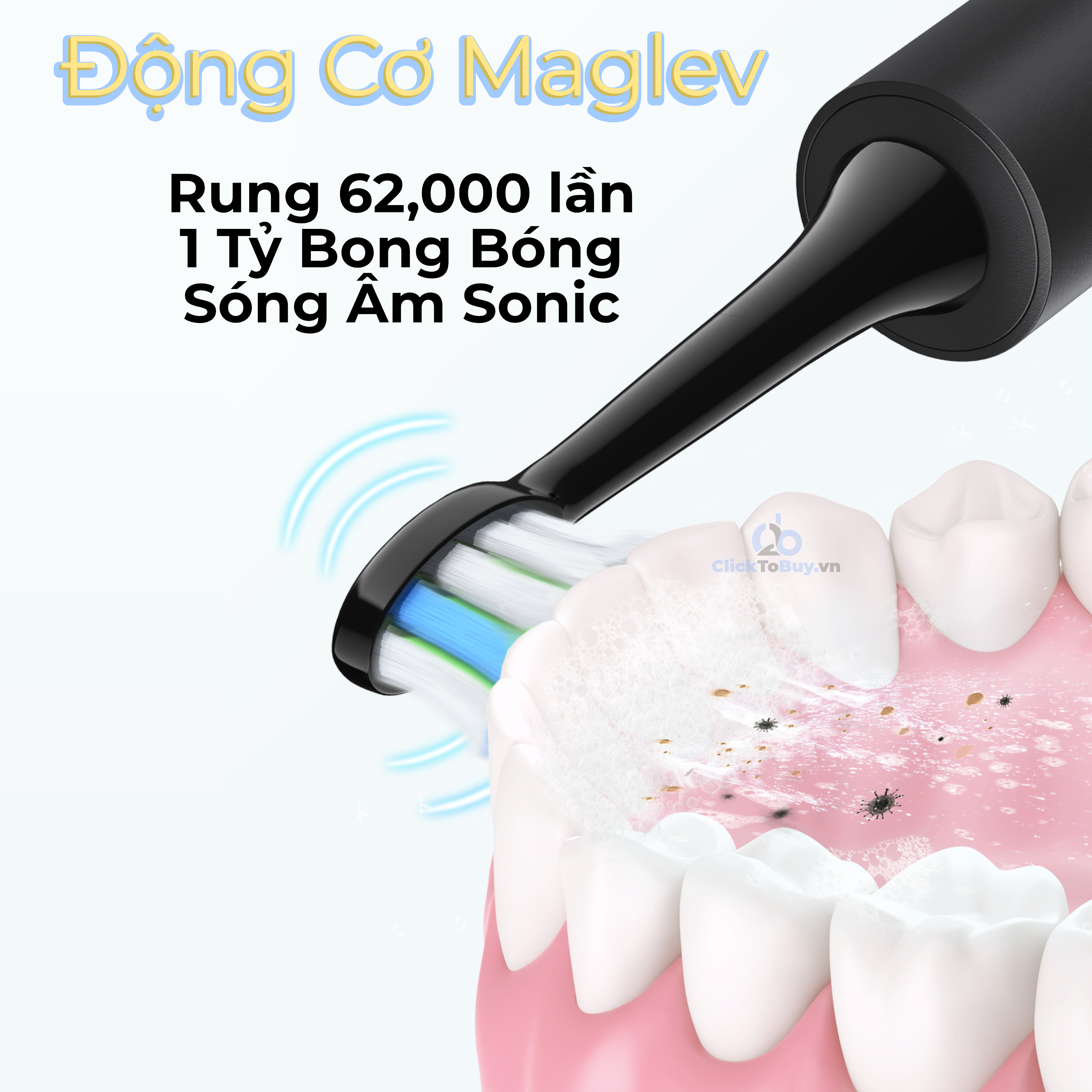 - Công nghệ sóng âm Sonic (Sonicare): Tạo ra tới 62.000 chuyển động bàn chải mỗi phút (31.000 rung động/phút), tạo ra các bong bóng siêu nhỏ chứa kem đánh răng và nước, len lỏi