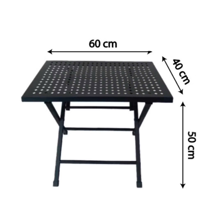 THÔNG TIN SẢN PHẨM - Xuất xứ: Việt Nam - Kích thước: Cao (50cm), Mặt Bàn (40x60m) - Bàn xếp nhỏ có thể gấp gọn, dễ dàng di chuyển - Khung sắt được sơn tĩnh