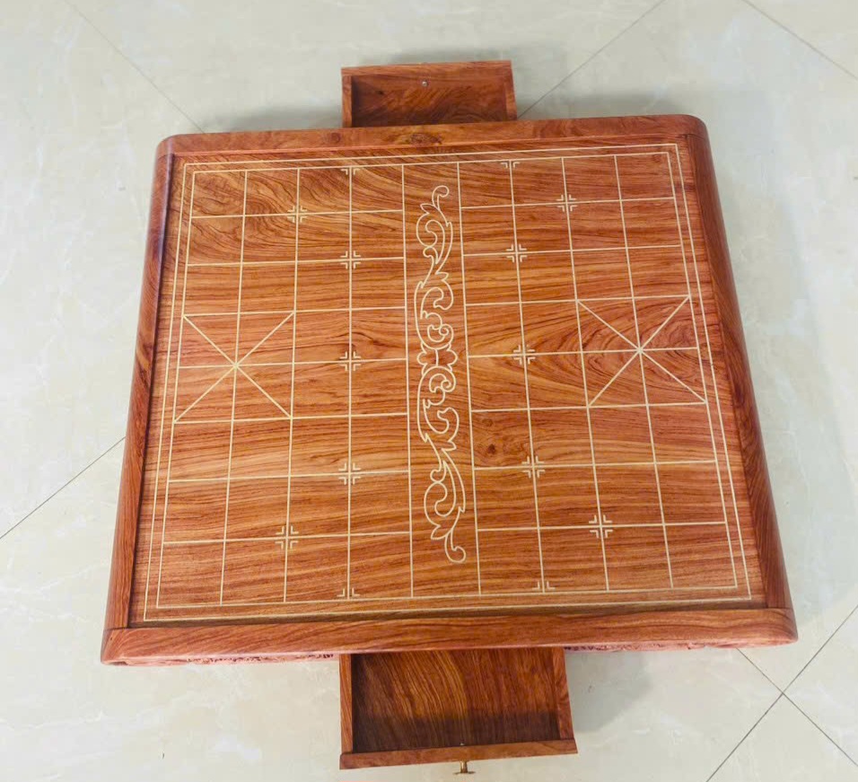 _ Bàn cờ tướng chân cuốn thư có ngăn kéo được làm bằng chất liệu gỗ hương tự nhiên 100% _ Kích thước ngang 50 dài 56 cao 7cm _ Bàn cờ tướng được thiết