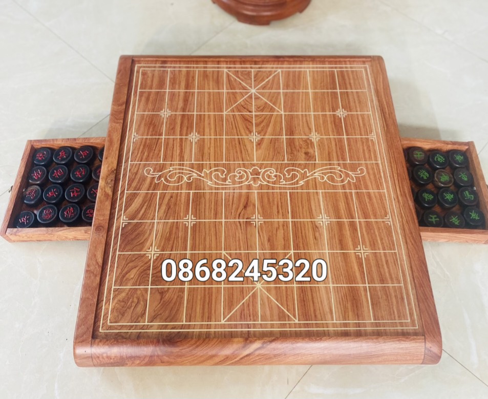 Mua tại TiktokBàn cờ tướng được làm bằng chất liệu gỗ hương đá tự nhiên 100% Kt 55×60 dầy 8cm _ Bàn được thiết kế có ngăn kéo khi chơi kéo ra lấy quân đặt lên bàn chơi ,Khi chơi song kéo ra cất quân cờ rất tiện ích .Phân mặt bàn làm bằng tấm gỗ liền khối .Chạy đường chỉ phân ô phân biên giới giữa hai bên với độ sắc nét đạt độ chích xác cực cao .Bàn cờ được lắp giáp và hoàn thiện do bàn tay khối óc tài hoa .Từ những người thợ giàu kinh nghiệm cũng như tay nghề cao trong làng nghề truyền thống .
