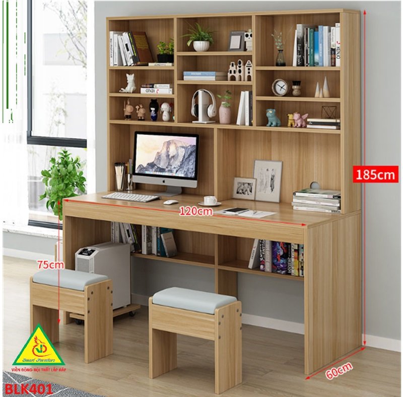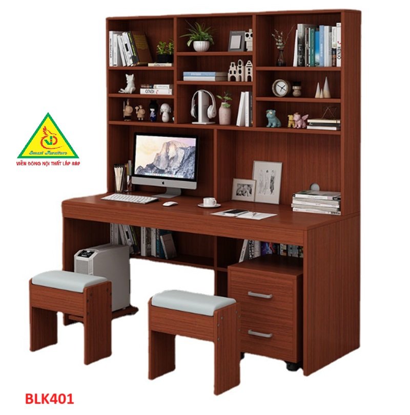 ✨Bàn làm việc, bàn học liền kệ gỗ MDF BLK401 - Nội thất lắp ráp Viễn Đông Adv