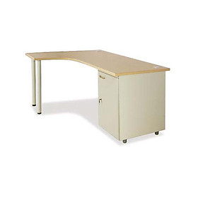 Bàn văn phòng góc trái có hộc sắt liền bàn cảnh mở, chân trụ tròn.