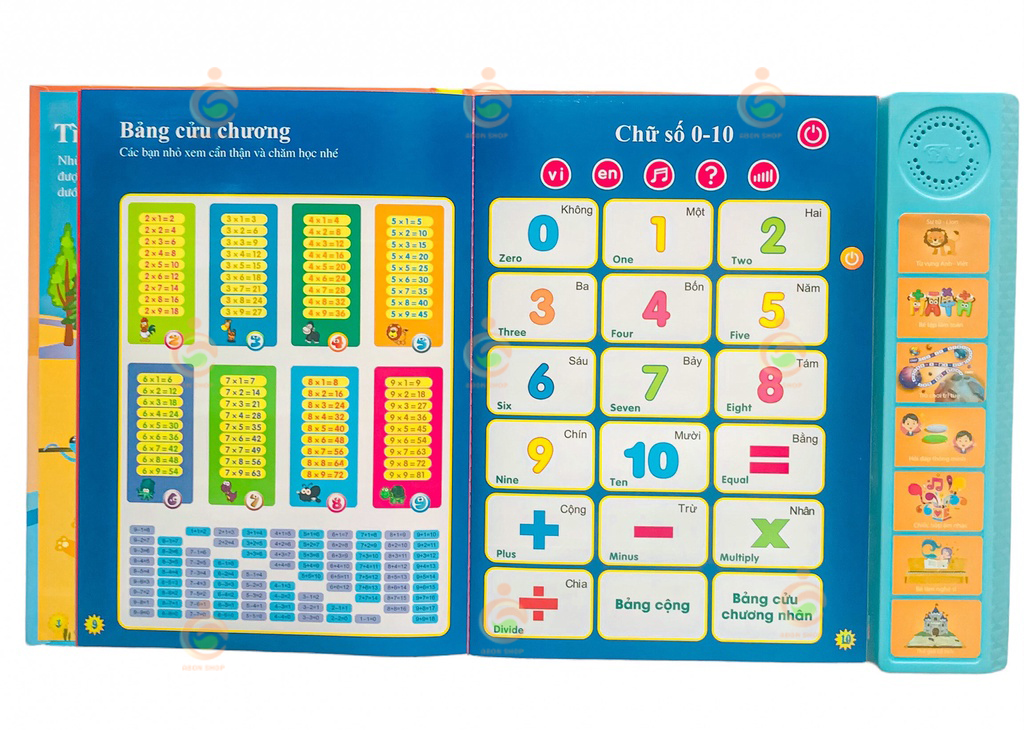 - Ngoài các tính năng như các phiên bản cũ, sách tích hợp thêm phần đọc bảng cửu chương gồm bảng nhân và bảng cộng, giúp bé tăng hứng thú học học toán và nhẩm tính nhanh rất hiệu quả;