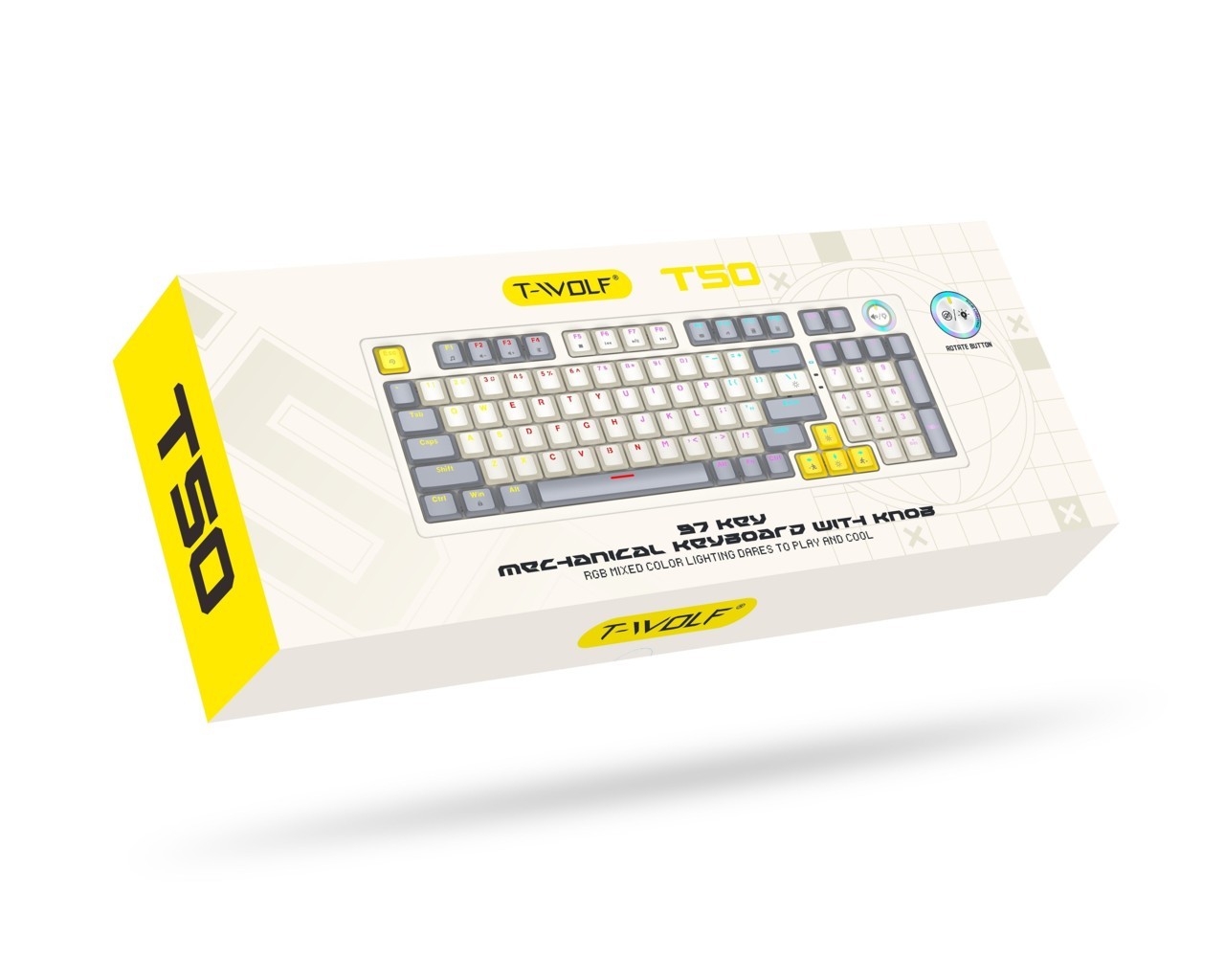 Bàn phím cơ T-WOLF T50 Blue Switch: lựa chọn nhỏ gọn cho game thủ Bàn phím cơ T50 Blue Switch có thiết kế 97 phím Blue Switch cao cấp với 4 màu sắc nịnh mắt, khả