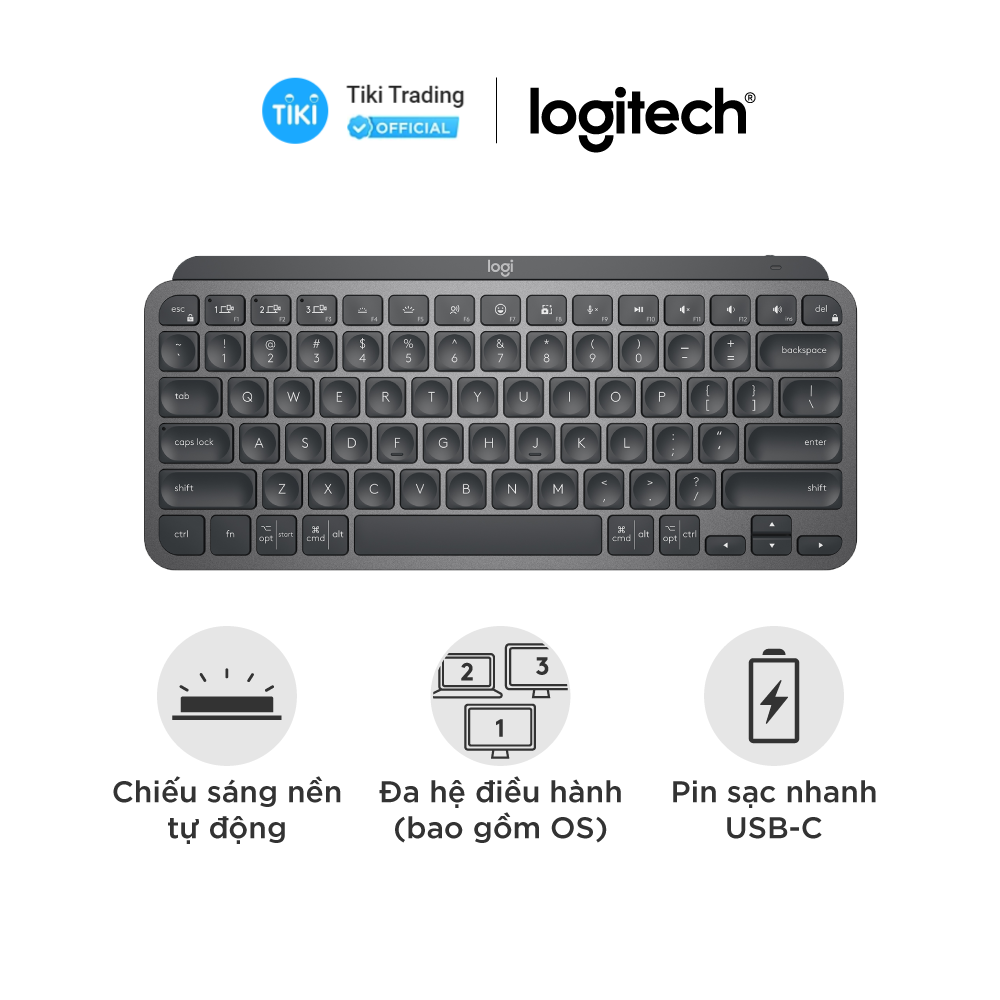 Bàn phím không dây Bluetooth Logitech MX Keys Mini - Nhỏ gọn, Sạc USB-C, Phím tắt thông minh, Có bản cho Mac • CÁC PHÍM THÔNG MINH PERFECT STROKE Gõ trên các phím được