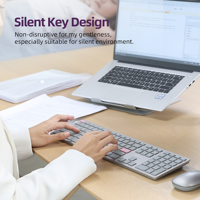 Phím chiclet với cơ chế cắt kéo "X-Scissors" mang lại cảm giác gõ êm ái, giảm tiếng ồn đến 80% Kích thước nhỏ gọn với khả năng tương thích cao dễ dàng mang đi bất