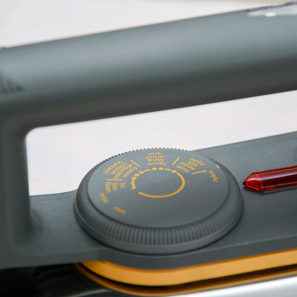 - Chất liệu: Đế bằng hợp kim siêu bền tráng men titanium chống dính tốt. Điện trở đúc giúp nóng nhanh mà nguội nhanh. - Mức nhiệt: Chỉnh nhiệt độ theo từng loại vải như: