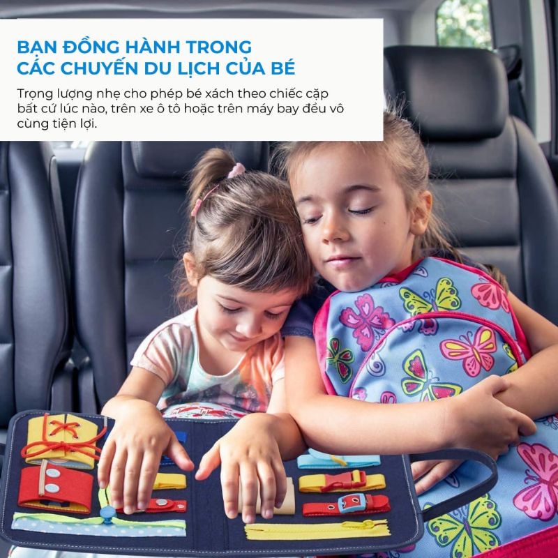 Busy Board khi gấp lại giống như một chiếc túi xách vì vậy đây còn được xem như món đồ chơi lý tưởng cho những chuyến du lịch. Đủ thách thức để giữ được sự quan tâm của con nhưng không quá khó khiến bé nản lòng.