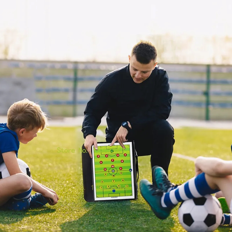 Bảng chiến thuật bóng đá gấp. Kèm bút dạ. Bảng chiến thuật bóng đá gấp được làm bằng chất liệu nhựa cao cấp, màu sắc bắt mắt, dễ theo dõi. Bảng chiến thuật bóng đá