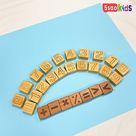 MÔ TẢ SẢN PHẨM Vật liệu: 100% gỗ tự nhiên an toàn cho bé :Gỗ thông, gỗ gõ đỏ, gỗ tần bì, … Kích thước bộ chữ cái: 4cm x 4cm x 2cm ( 26 miếng) Kích thước bộ số: 4cm x 4cm x 2cm (27 miếng), bao gồm 20 số và 7 dấu cơ bản Độ tuổi: Phù hợp cho các bé từ 1 tuổi trở lên