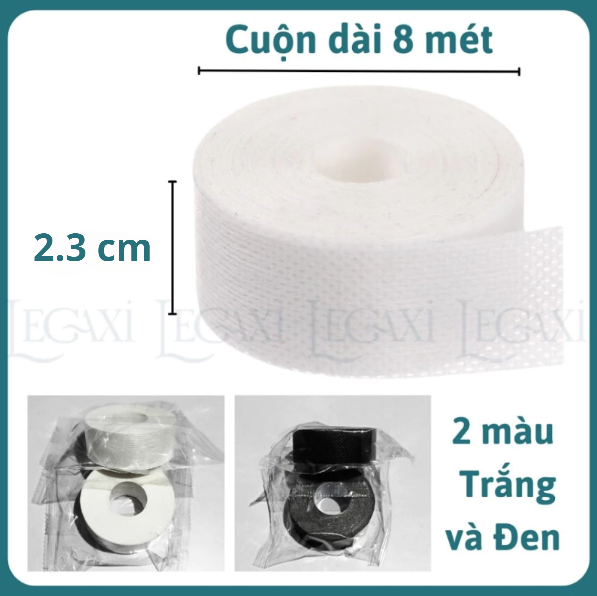THÔNG TIN SẢN PHẨMChất liệu: Vải không dệt.Kích thước miếng dán: Cuộn dài 8m (Rộng 2.3cm).Trọng lượng: 40gr.Màu sắc: Trắng và Đen.CÔNG DỤNGGiúp thấm hút mồ hôi ở vùng cổ áo/ tay áo/ vành nón để...