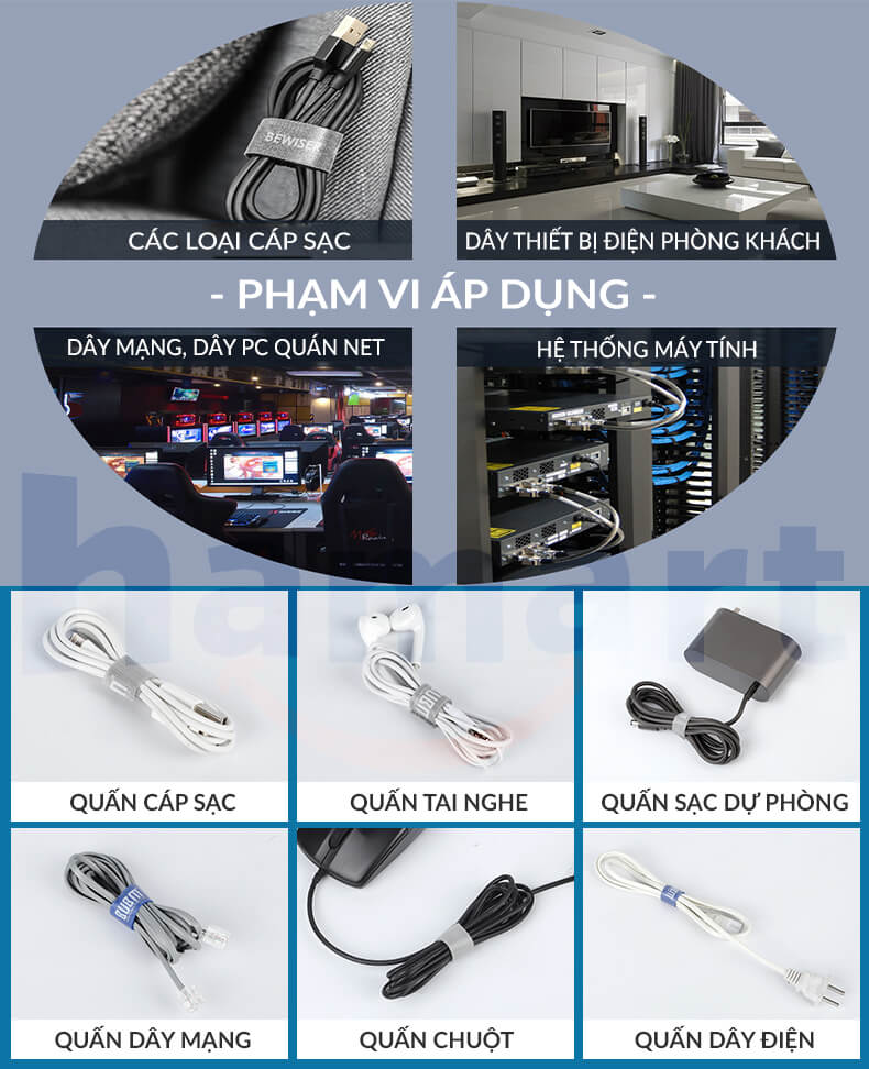 - Ứng dụng: Quấn dây sạc, tai nghe, dây mạng, dây thiết bị điện tử dán chống rối