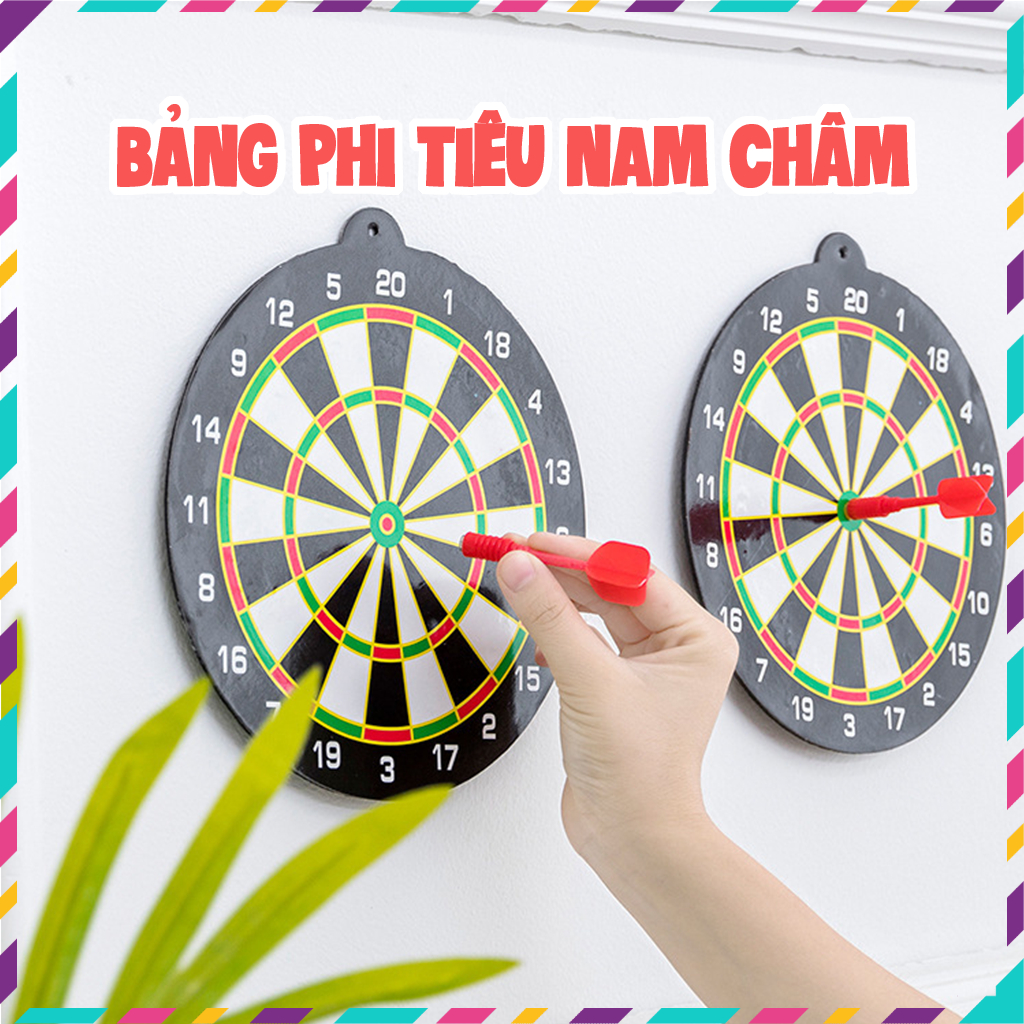 - Sản phẩm là một bảng phi tieu làm bằng nhựa với bộ 3 mũi tên phi tieu nam châm bằng nhựa. Bảng phi tieu gồm 2 mặt với các hình thức tính điểm khác nhau, chơi chán mặt này có thể quay sang chơi mặt kia. Trò này thích hợp cho các bạn trẻ, một nhóm ngườ