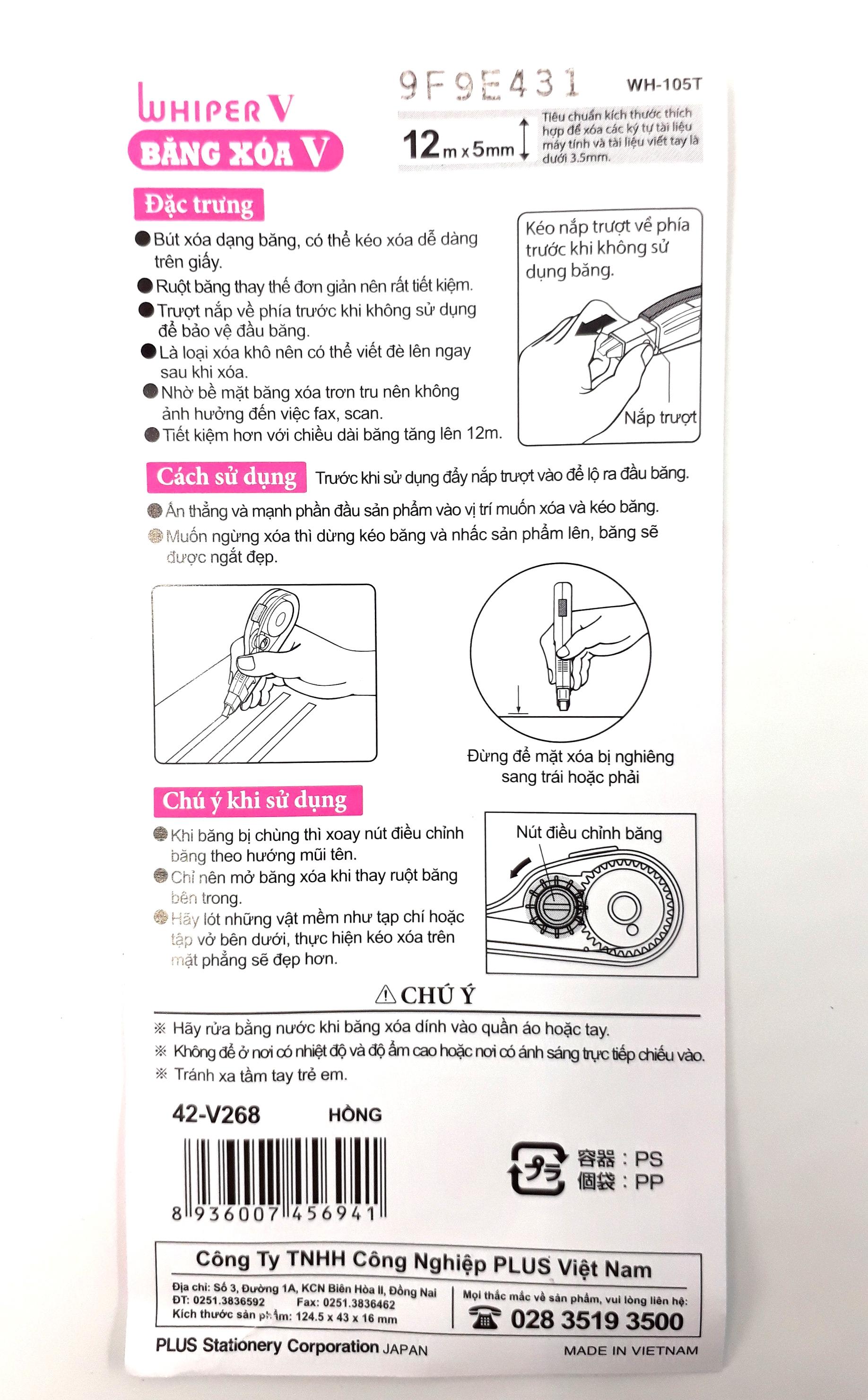 ✨Băng Xóa Whiper V-42-V268-PK - Màu Hồng