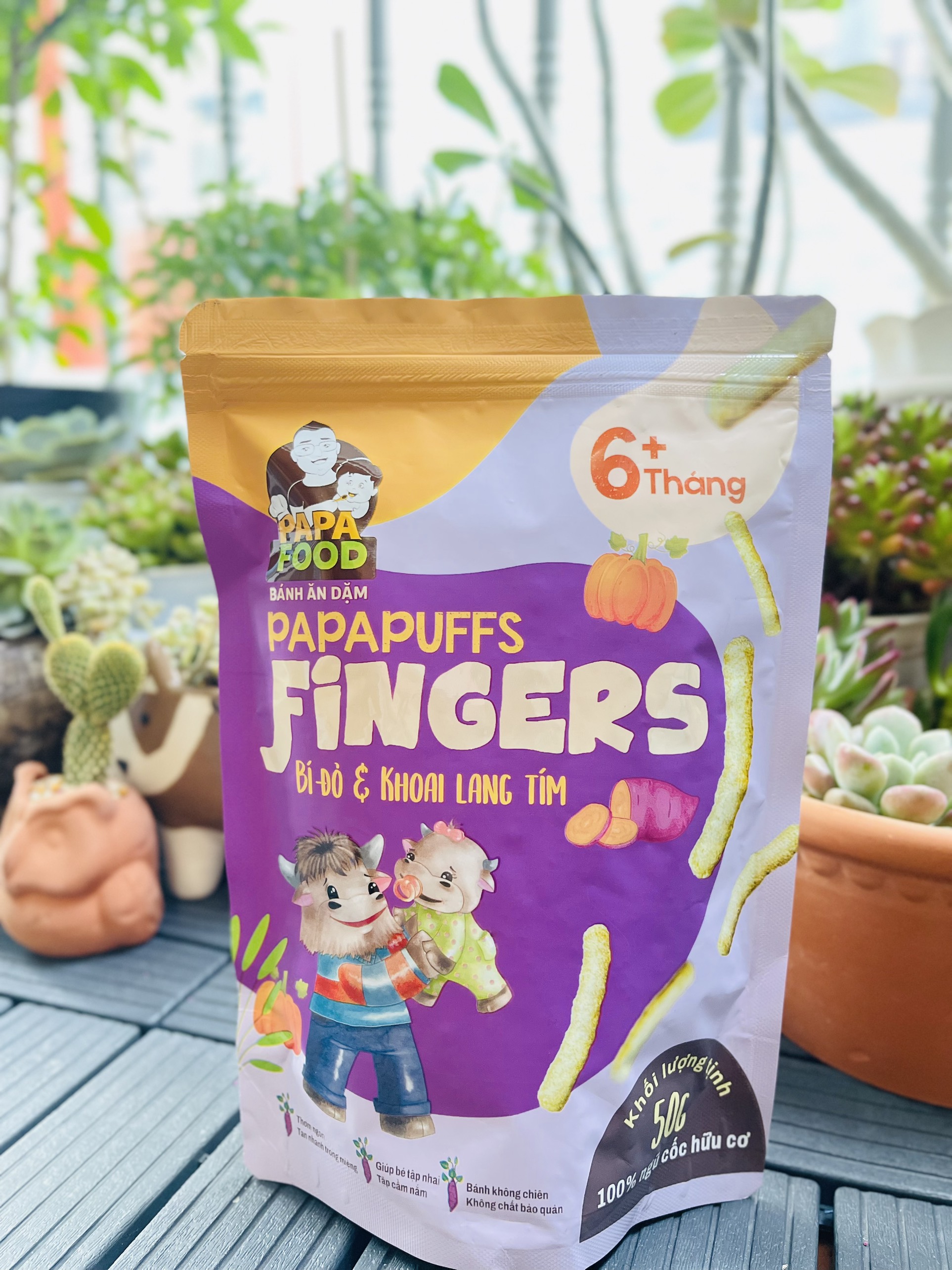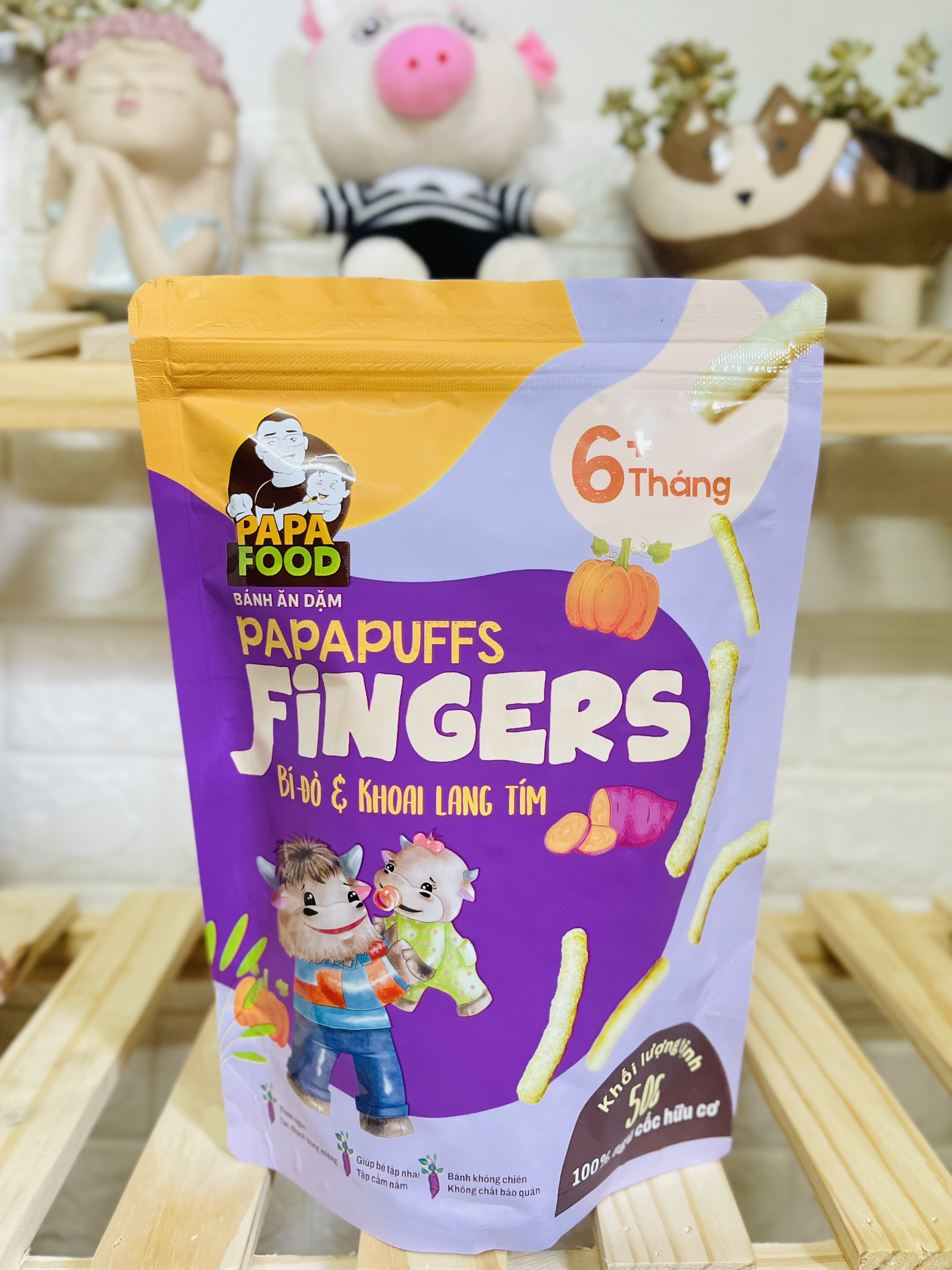 Mua tại Tiktok- Tên sản phẩm: Bánh ăn dặm PAPAPUFFS FINGERS - BÍ ĐỎ VÀ KHOAI LANG TÍM .