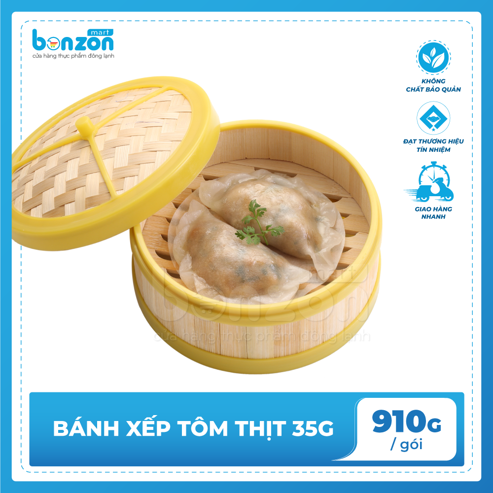 Với sản phẩm tươi sống, trọng lượng thực tế có thể chênh lệch khoảng 10%. ĐỊNH LƯỢNG: 22g/cái x 40 cái/gói THÀNH PHẦN: Vỏ bột xíu mại, thịt heo, tôm, nấm đông cô, mỡ thắng, gia