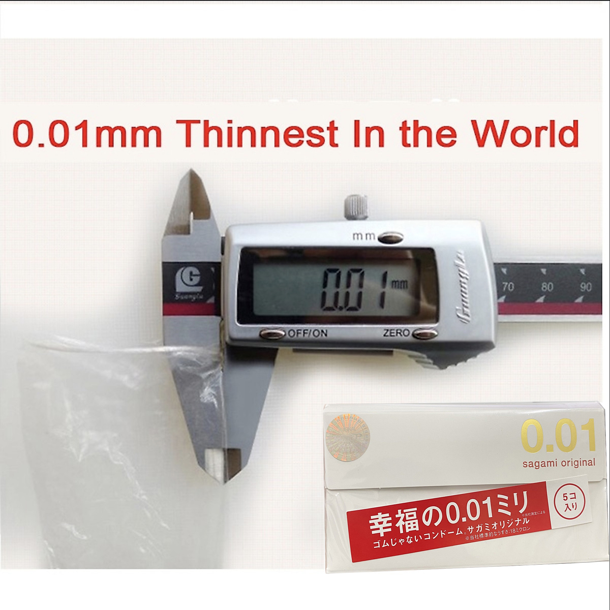 - Độ mỏng: 0.01mm (bao cao su mỏng nhất thế giới)
