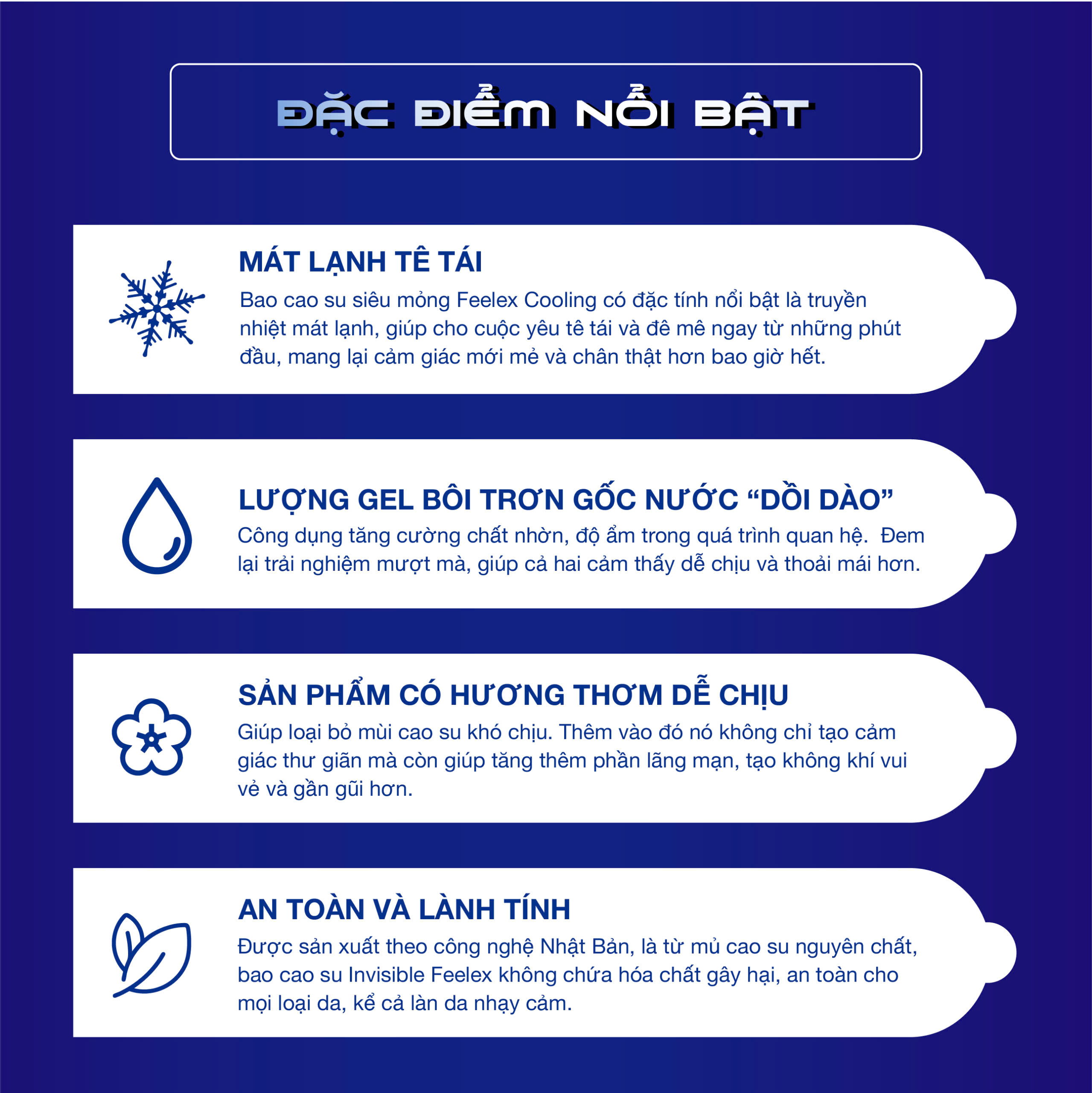 Bao cao su Feelex Cooling siêu mỏng, mát lạnh, cảm giác chân thật, hộp 10 bcs