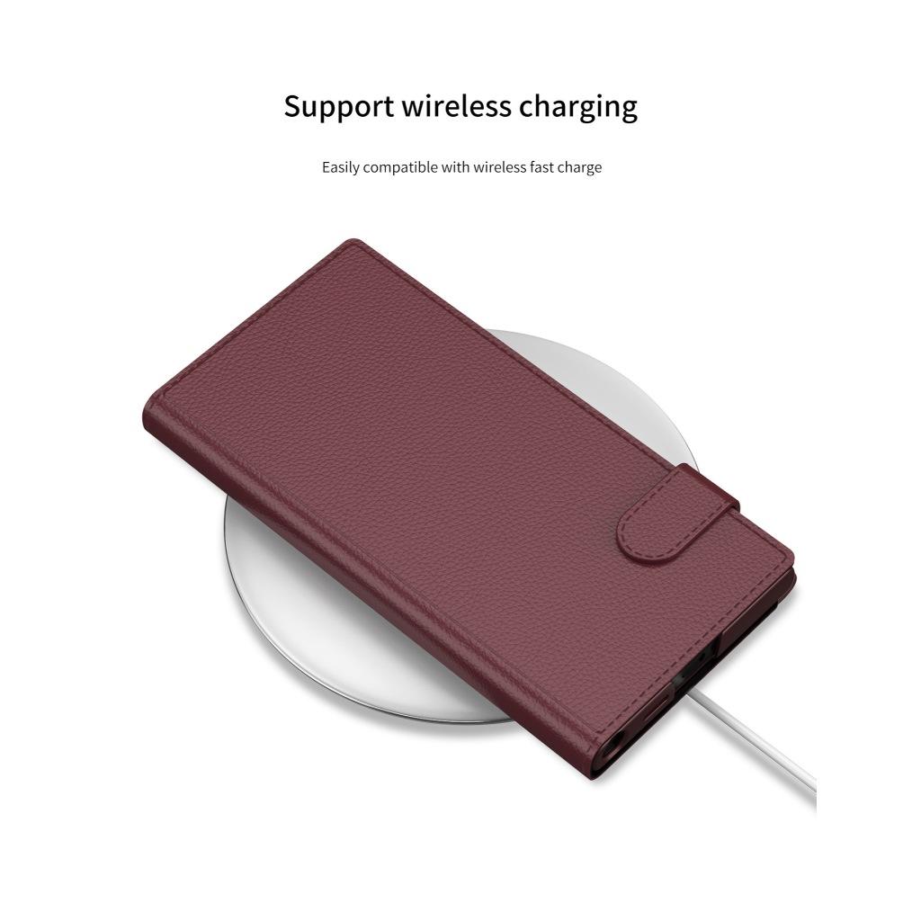 - Ốp lưng da có vòng từ tính hỗ trợ sạc không dây tiện lợi cho máy Samsung Galaxy S24 Ultra / S23 Ultra / S22 Ultra / S22 Plus - Mặt lưng da lộn