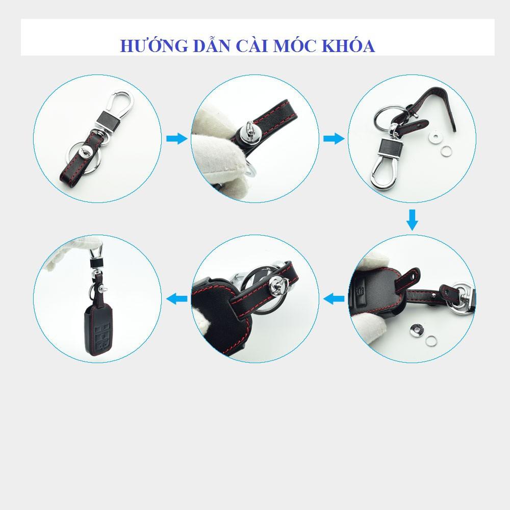 - Chất liệu: Da nappa - Dòng xe sử dụng: TOYOTA - Trọn bộ sản phẩm : bao da chìa khóa và móc khóa - NSX : Việt Nam Chi tiết sản phẩm: + Chất