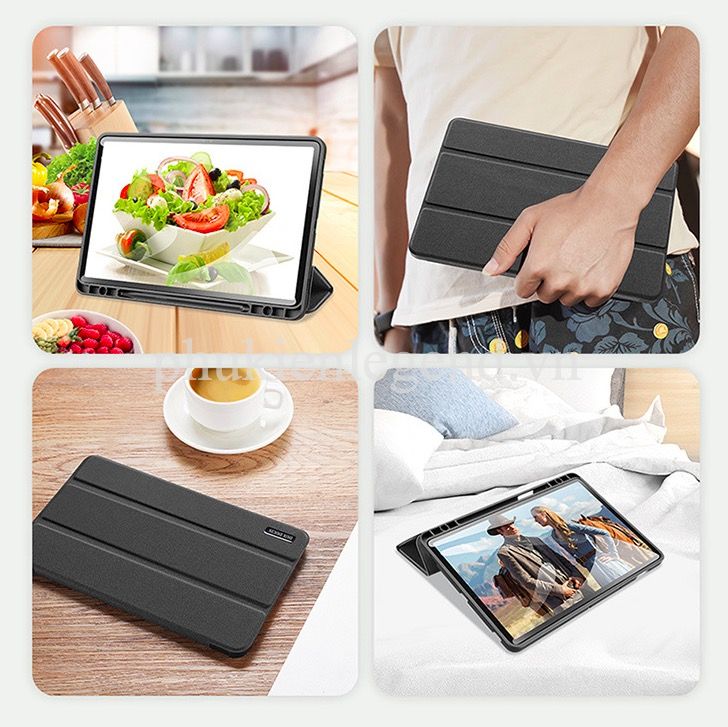 Mua tại TiktokBao da Dux Ducis Domo chính hãng (có khay đựng bút). là thiết kế mới với vẻ đẹp thời trang cao cấp cùng tính năng tiện dụng, an toàn bảo vệ toàn diện cho máy. Bao da Dux Ducis Domo rất đáng sở hữu bởi: Chất liệu nhựa TPU và da PU cao cấp độc đáo, lạ mắt, thân thiện với môi trường. Cảm biến thông minh tự động tắt mở khi đóng mở nắp bao da giúp tiết kiệm pin triệt để Đặc biệt ở phiên bản này, hãng Dux Ducis Osom thiết kế thêm khe cắm bút cảm ứng thuận tiện sử dụng ở bất cứ đâu, tránh quên hay thất lạc bút. Dựng máy với nhiều tư thế.