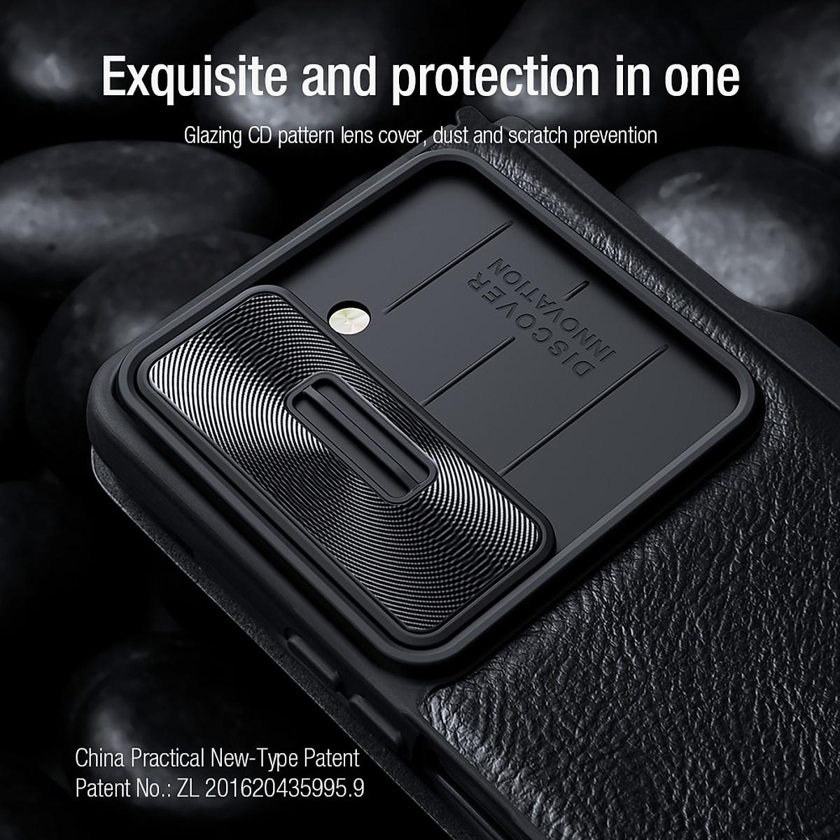 bao da chống sốc cho Samsung Galaxy Z Fold 6 trang bị nắp bảo vệ Camera và ngăn đựng S-Pen hiệu Nillkin Qin Pro (chất liệu da cao cấp, thiết kế thời trang cá tính) TRANG BỊ NẮP TRƯỢT BẢO VỆ CAME...