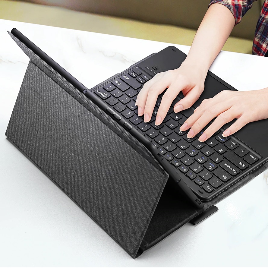 Bao da kèm bàn phím chính hãng Dux Ducis có bàn di chuột TrackPad vừa khít với thân máy và với thiết kế trượt ống kính đã được cấp bằng sáng chế, nó cung cấp khả năng bảo vệ đáng tin cậy cho mặt trước, mặt sau, bốn góc và camera của thiết bị. Vẻ ngoài đơn giản và chất liệu vải PU tinh tế hòa quyện với tính thẩm mỹ của máy tính bảng, nơi nghệ thuật và công nghệ được tích hợp hoàn hảo