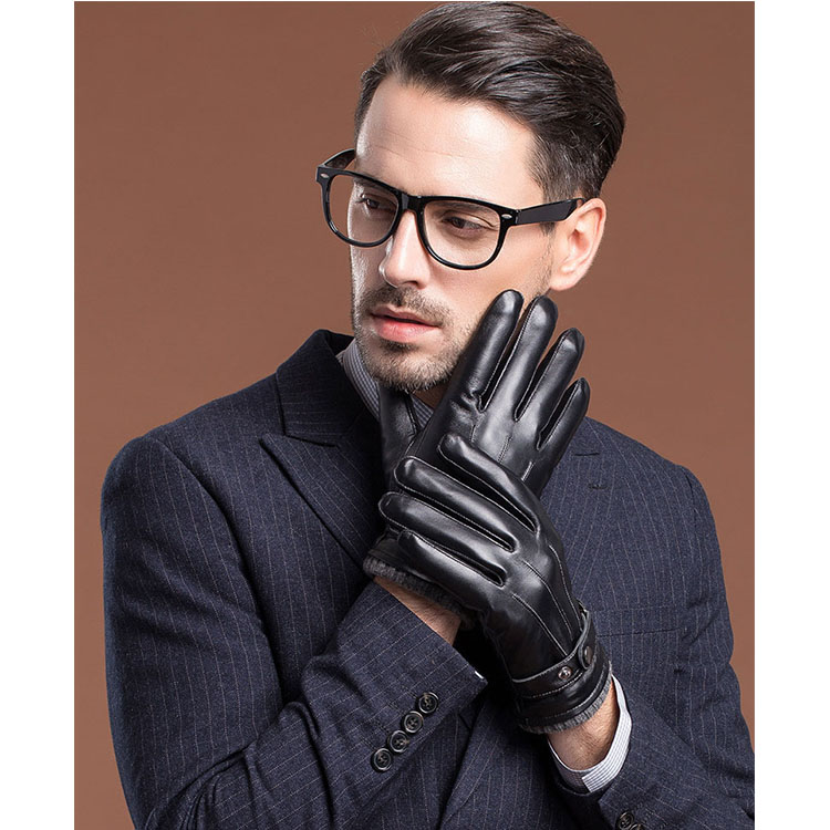 ✨Bao tay da nam YAOYAO BHY8597L Găng tay nam da cừu lót len, cúc bấm điều chỉnh ôm tay.