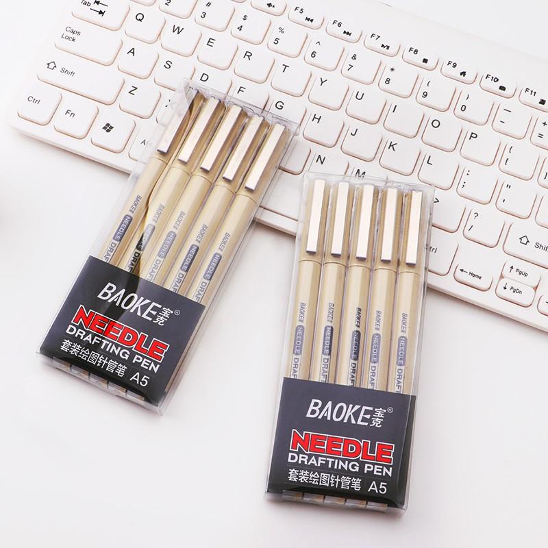 Thường được dùng trong vẽ, thiết kế, kiến trúc Vỉ 5 Cây Viết Mỹ Thuật Baoke (0.1/0.5/0.7/0.3/0.05) gồm 5 size ngòi: 0.1/0.5/0.7/0.3/0.05mm.