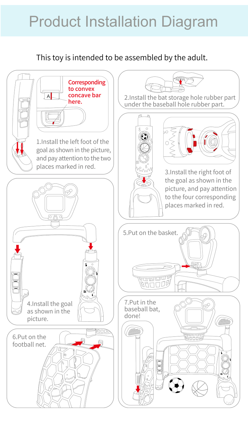 Bộ đồ chơi mô phỏng vận động siêu vui tích hợp 3 môn: bóng đá, bóng rổ và golf mini, giúp bé: Rèn thể lực và kỹ năng phối hợp nhóm. Phát triển phản xạ