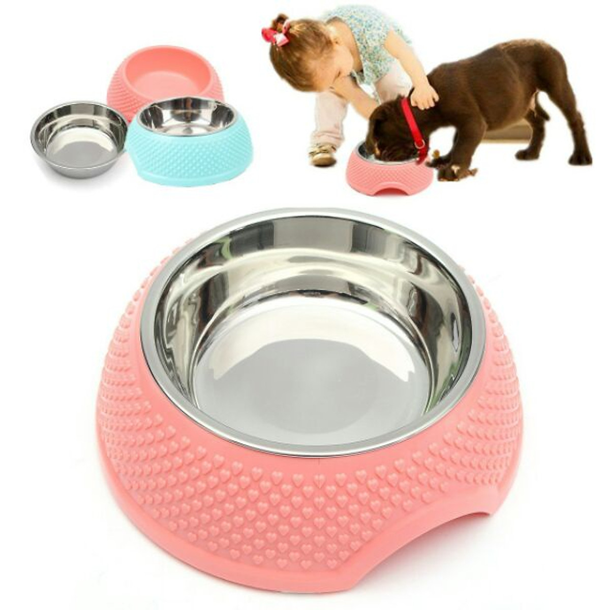 • Bát nhựa lõi inox họa tiết tim - Bát ăn cho chó mèo chất liệu nhựa PVC chắc chắn kết hợp lõi inox cao cấp