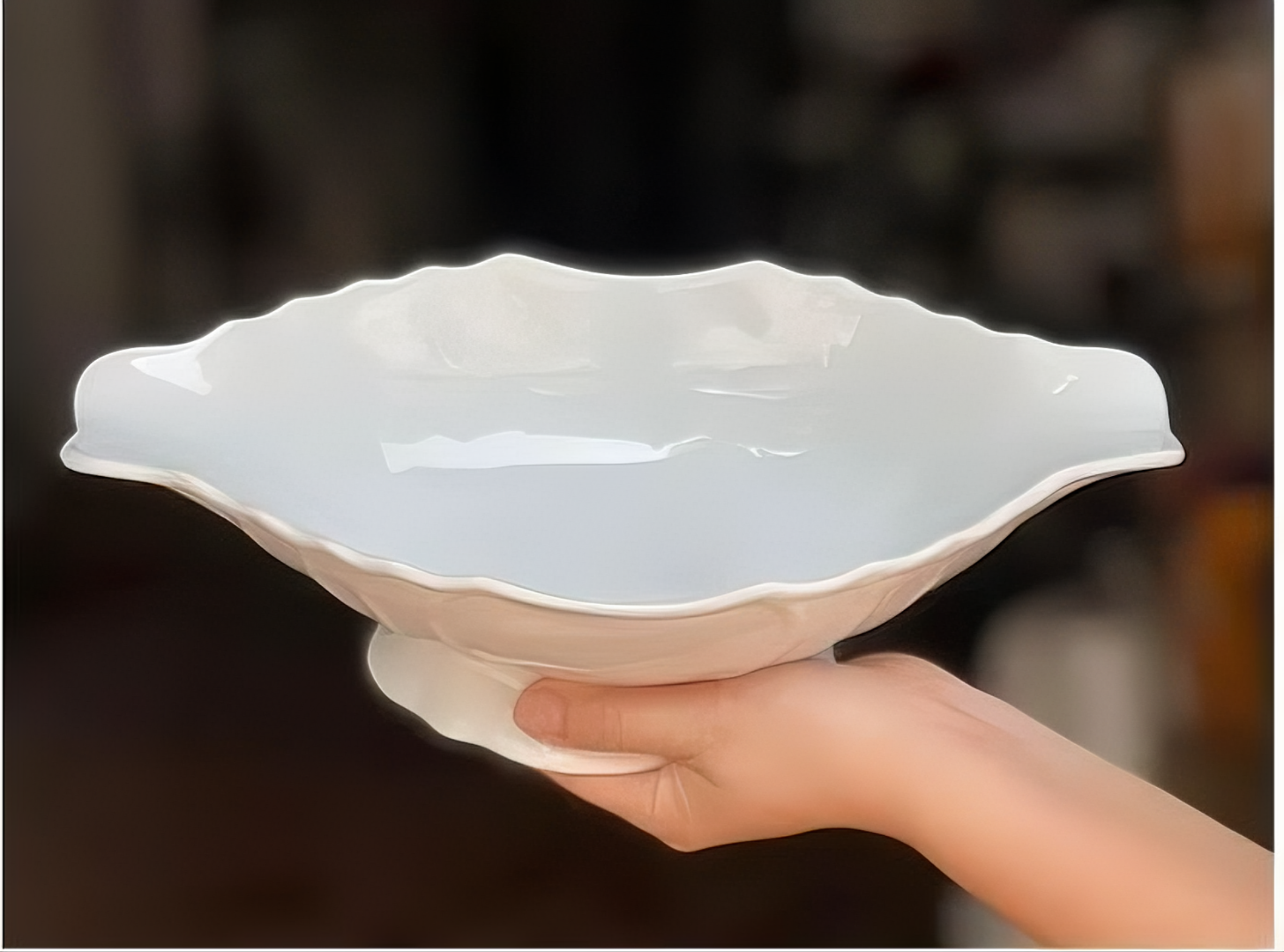 Thiết kế đẹp mắt hình eo. Có thể thả hoa, bày trái cây, bày món tráng miệng như chè, hoa quả thái miếng hoặc bày đồ ăn (salad, súp, hoặc nguyên cả con cá dài).