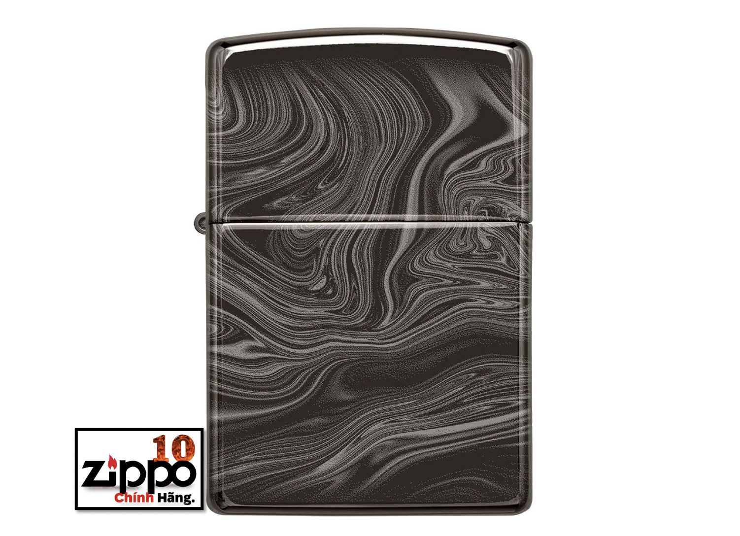 Thiết kế mới hoa văn vân đá cẩm thạch được tạo trên chiếc bật lửa Zippo đồng thau, nền mạ High Polish Black bằng qui trình in hình ảnh màu 360° của Zippo. Được đóng