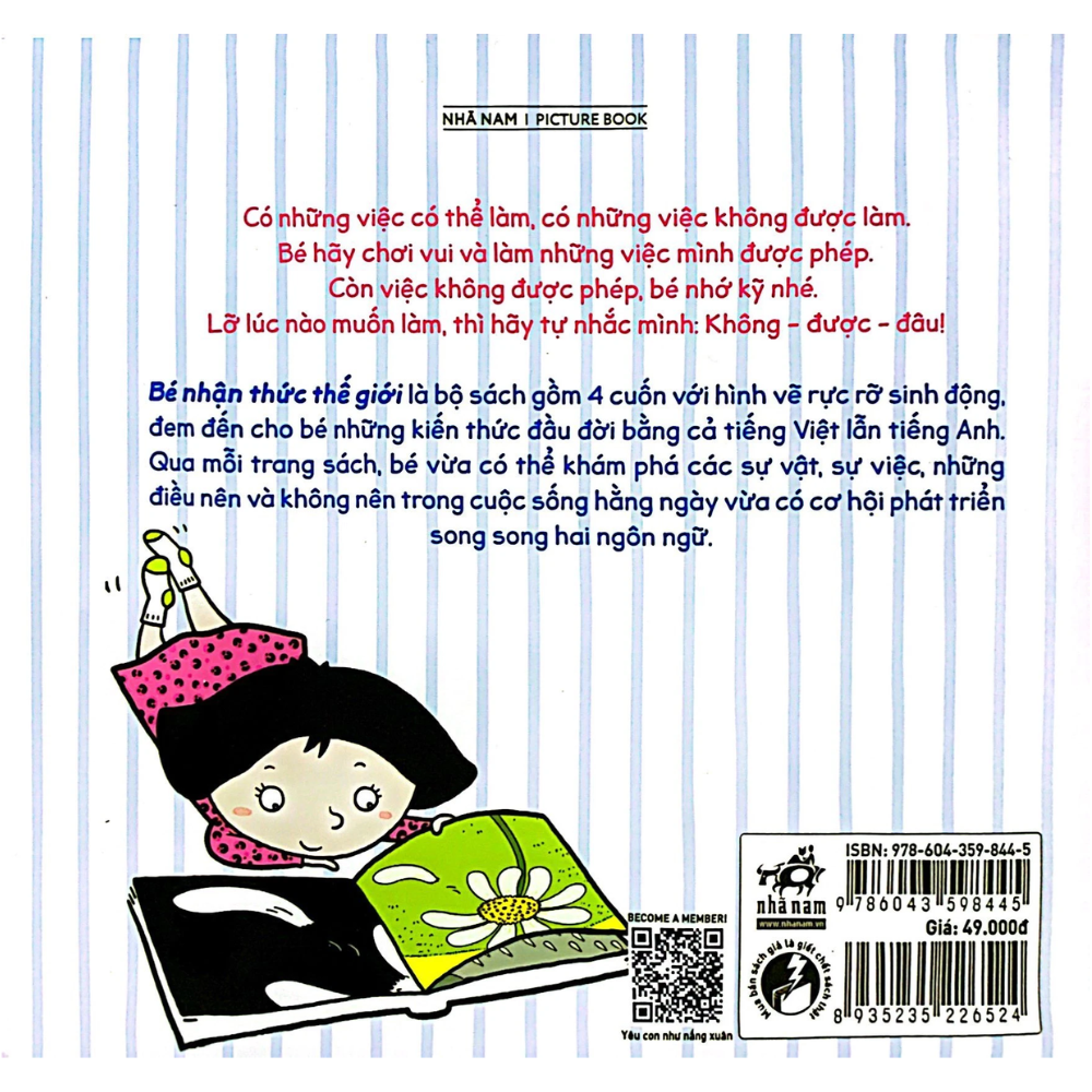 Sách tranh song ngữ Việt - Anh cho bé từ 1 - 6 tuổi: Bé nhận thức thế giới là bộ sách gồm 4 cuốn cung cấp kiến thức về các sự vật, sự việc, những điều nên và không nên trong đời sống hằng ngày cho các bé từ 1 - 6 tuổi qua loạt hình vẽ rực rỡ sinh động. Song ngữ Việt-Anh giúp phát triển khả năng ngôn ngữ.