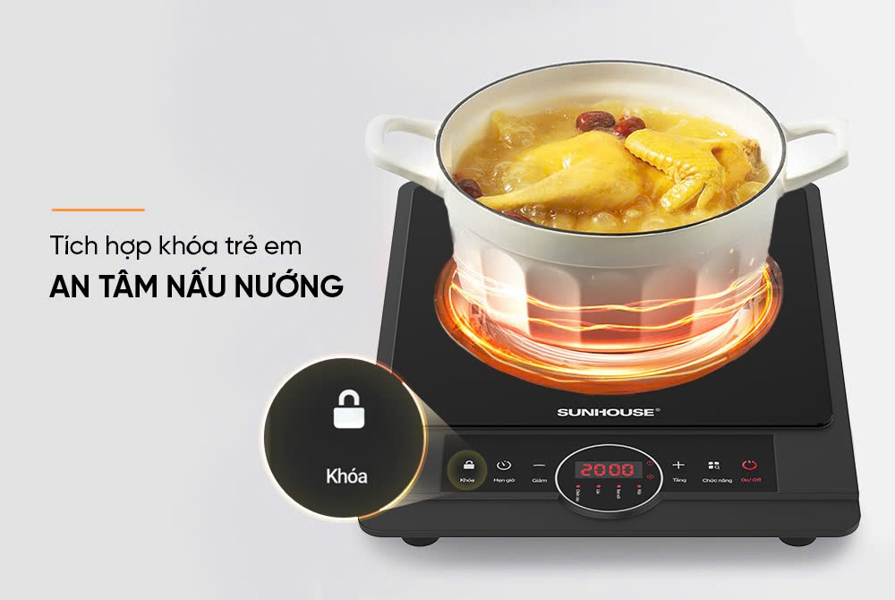 Đặc điểm nổi bật: Bếp hồng ngoại cảm ứng Sunhouse SHD6017 Khóa an toàn đối với trẻ em Tay nắm tiện lợi trong quá trình di chuyển Không bức xạ nhiệt, sử dụng an toàn