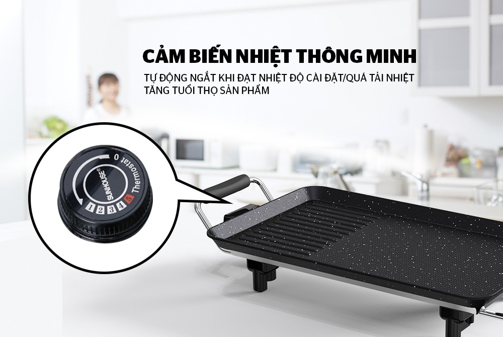 Bếp Nướng Điện Sunhouse SHD4600 | Chống Dính Cao Cấp, Không Khói, Xoay Điều Chỉnh Nhiệt