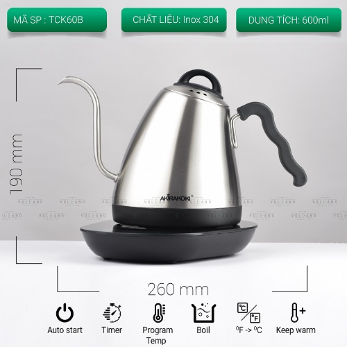 Mua tại TiktokẤm rót cổ ngỗng kiêm bếp dung Akirakoki dung tích 600ml Nếu bạn đang tìm kiếm 1 chiếc ấm drip cổ ngỗng kiểu dáng công thái học sinh ra để dành cho việc pour hằng ngày. Kèm bếp cảm ứng với các tính năng như: Cài đặt nhiệt độ nước, giữ nóng liên tục sẵn sàng sử dụng, tích hợp đồng hồ thời gian… Thì chiếc ấm này sinh ra là dành cho bạn. Ấm điện Akirakoki này có gì đặc biệt? Thân ấm công thái học. Mặt bếp điều khiển cảm ứng hoàn toàn. Thiết kế tách rời, xoay ấm được 360 độ. Tự động tắt và bật để duy trì nhiệt độ đã định trong 1 giờ. Kiểm soát nhiệt độ thời gian thực bằng bảng đồng hồ điện tử. Tích hợp bộ đếm thời gian. Vòi cổ ngỗng cho dòng nước cực mềm và dễ điều khiển.