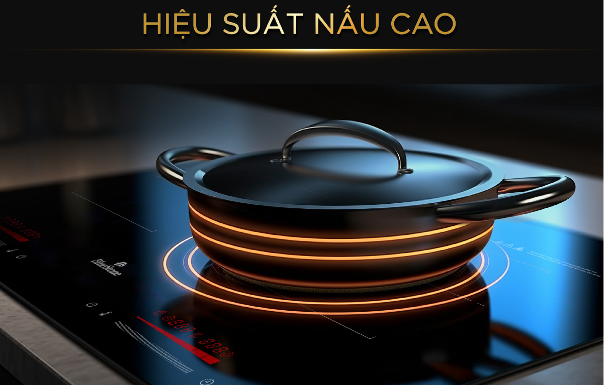 Cuộn từ bằng đồng đường kính lớn giúp tối ưu thời gian nấu nhờ truyền nhiệt nhanh hơn, tối ưu khả năng tương thích với các loại nồi chảo có đường kính lớn.